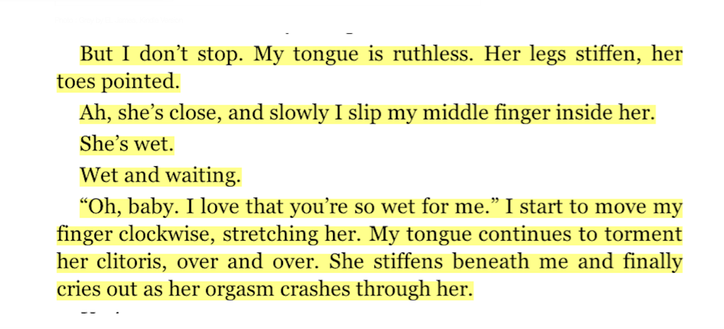 While I reject the argument that women are simply shallow or cannot handle serious literature, the fact is that women have unfortunately allowed themselves to be infantilized by an industry that believes the female brain can handle nothing more than orcs and orgasms (or orc orgasms). After all, many of these books contain straight pornography, such as this passage from E.L. James’ Fifty Shades of Grey that I must regrettably cite in order to prove my point: